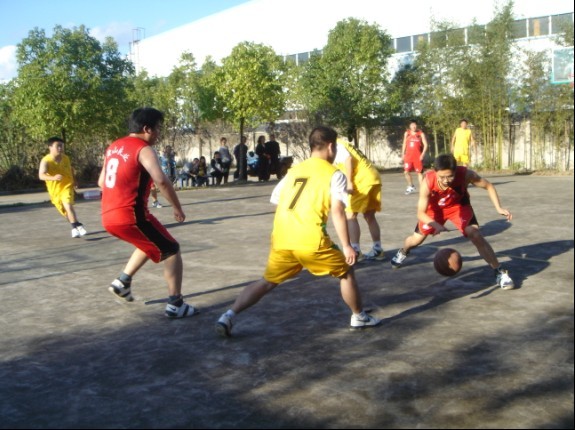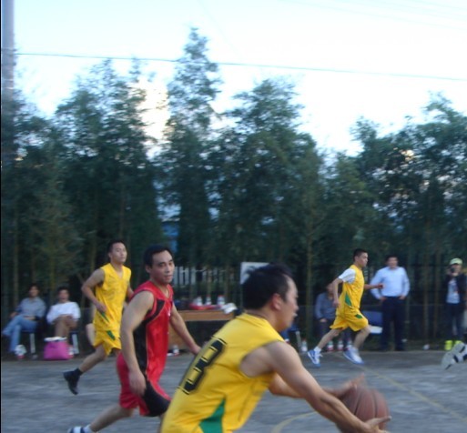15:00時,由鎮政府書記帶領的籃球隊員準時來到良業公司的籃球場,15:30分在熱烈友好的氣氛中比賽開始了。